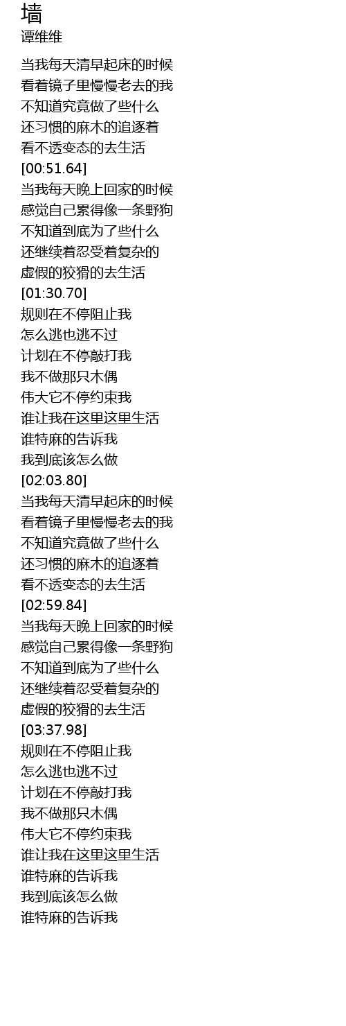 | [04:04.55] | shuí tè má de gào sù wǒ |