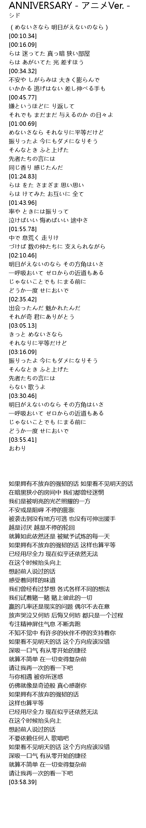 ANNIVERSARY - アニメVer. - 歌词