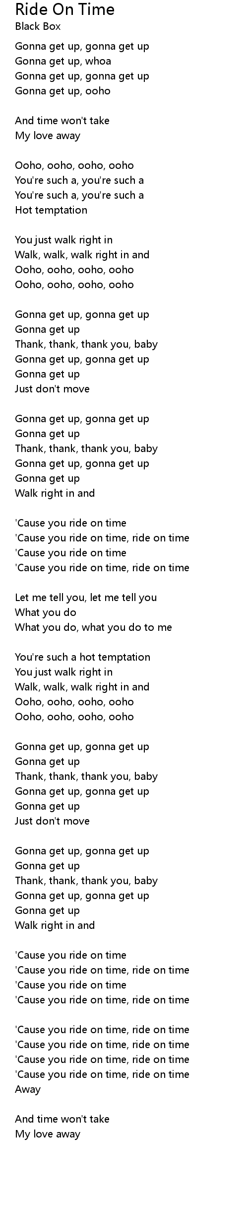 'Cause you ride on time, ride on time |