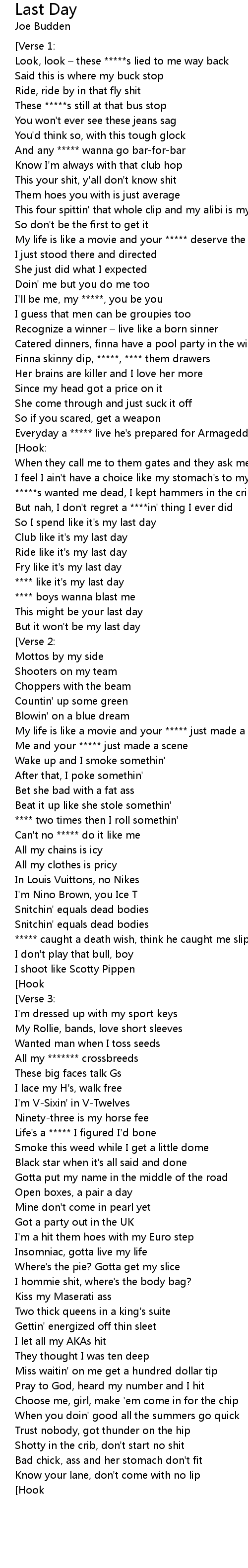 | [01:17.179] | Everyday a ***** live he's prepared for Armageddon |