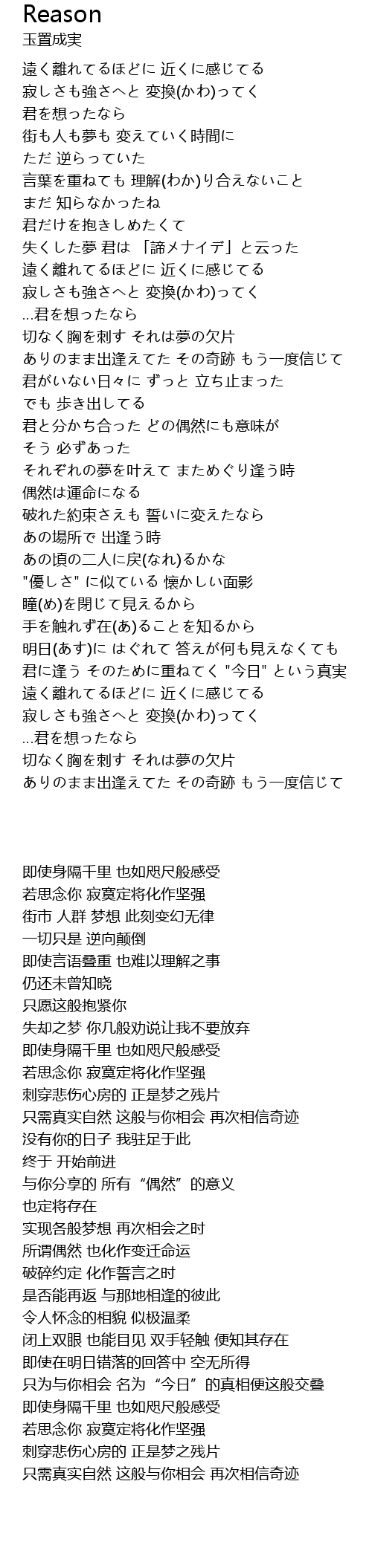 | [04:12.410] | ありのまま出逢えてた その奇跡 もう一度信じて |