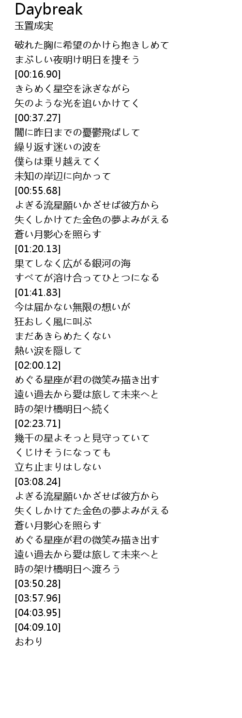 | [03:42.07] | 時の架け橋明日へ渡ろう |
