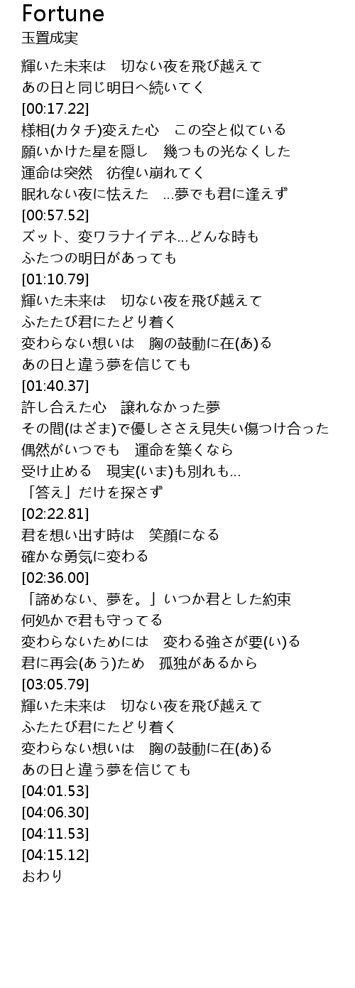 | [03:40.18] | ふたたび君にたどり着く |