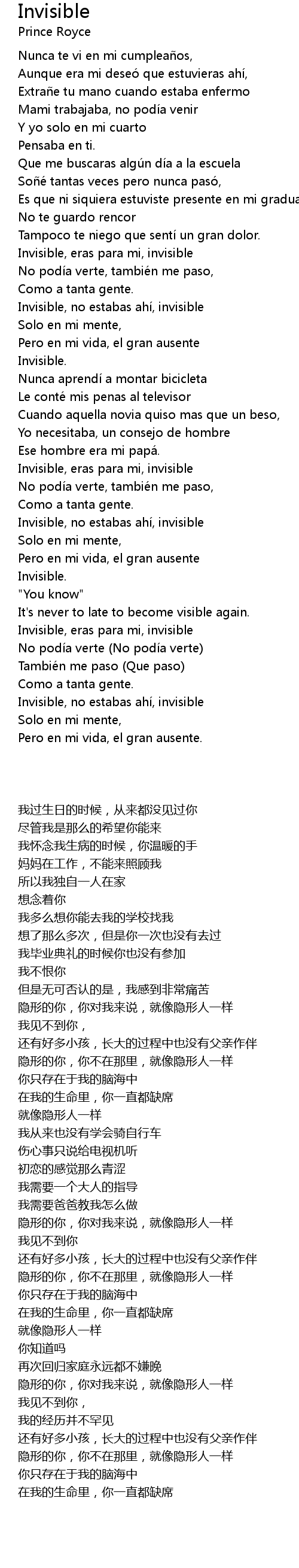| [02:52.04] | Invisible, no estabas ahi, invisible |