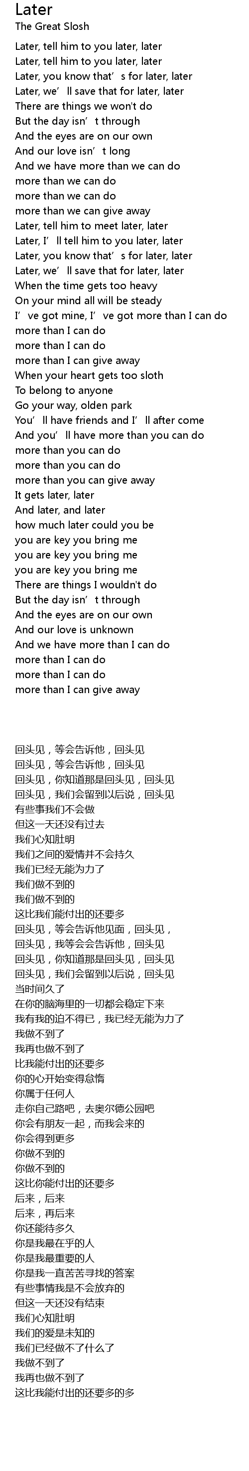 | 歌曲 | Later |