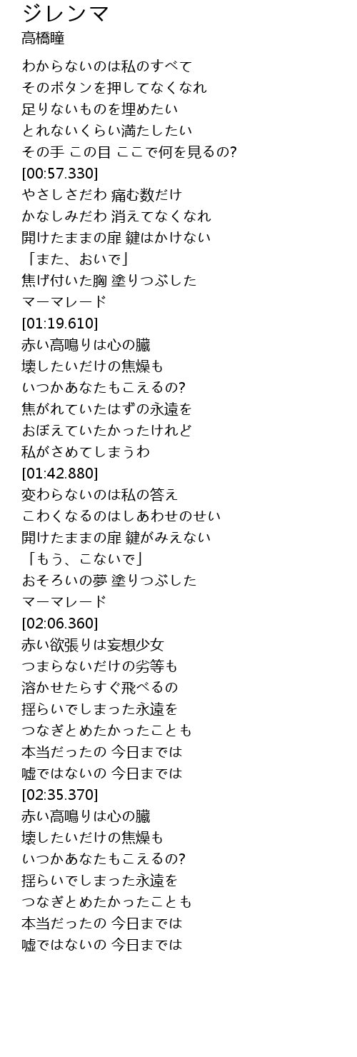| [02:07.000] | 赤い欲張りは妄想少女 |