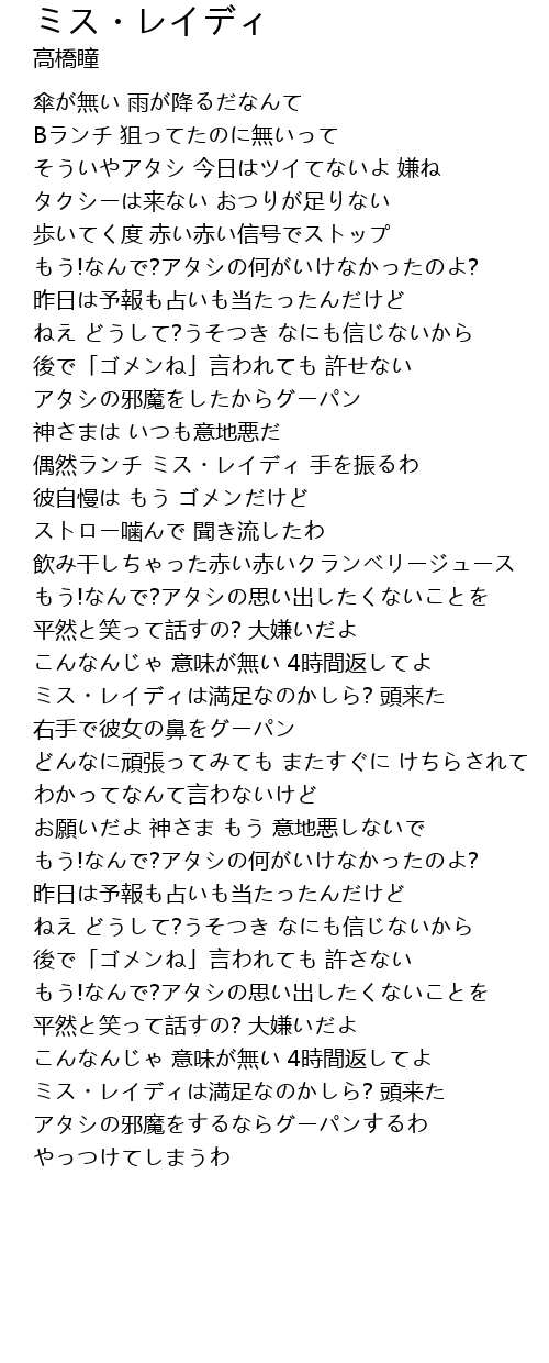 | 歌曲 | ミス・レイディ |