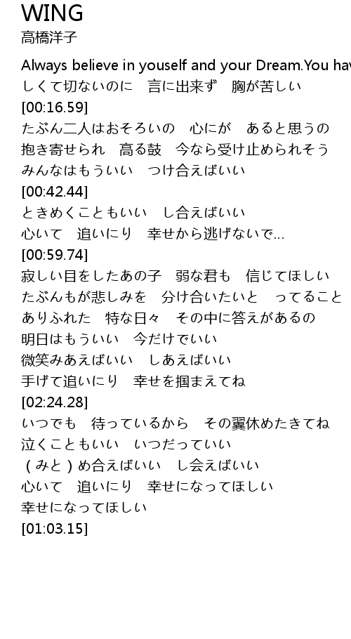 | [00:05.66] | Always believe in youself and your Dream.You have A Wing!! |