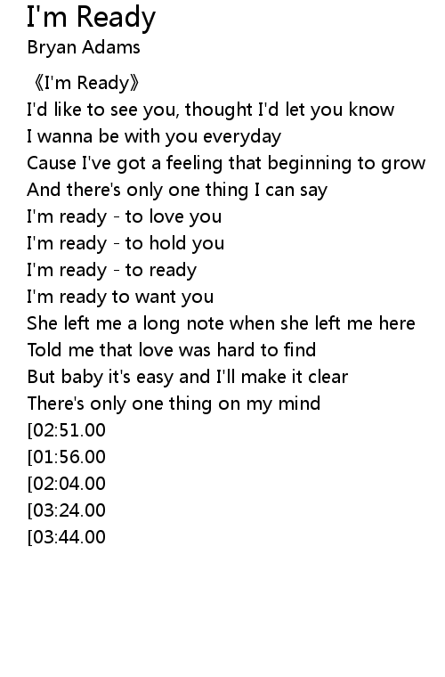 | [03:47.00][03:44.00][03:33.00][03:21.00] | I' m ready |