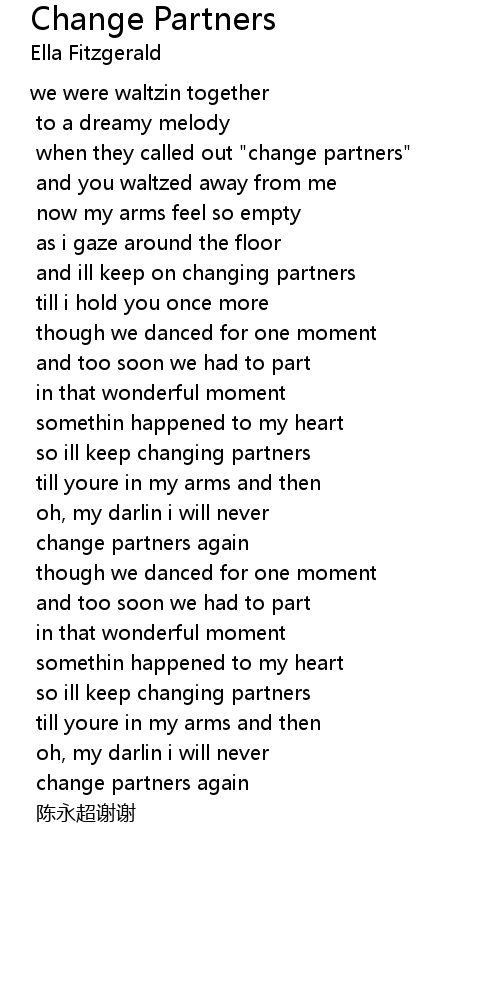 | and ill keep on changing partners | |