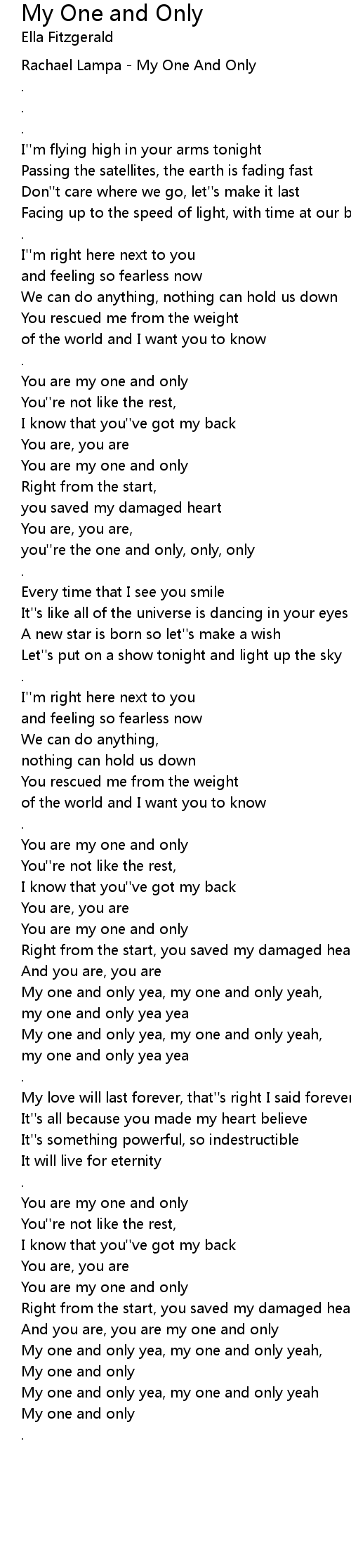 My one and only yea, my one and only yeah, |