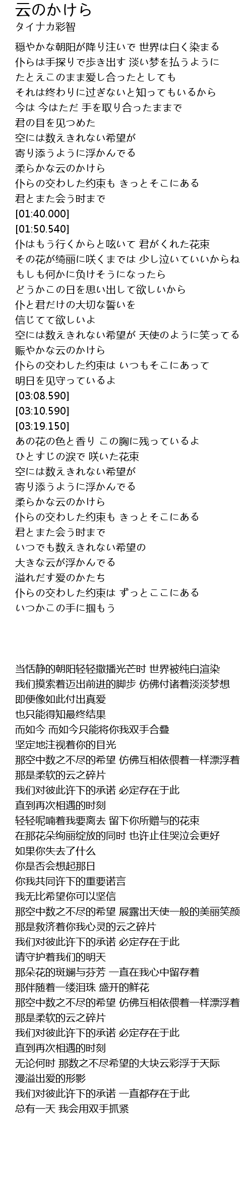 | [02:50.460] | 那是救济着你我心灵的云之碎片 |