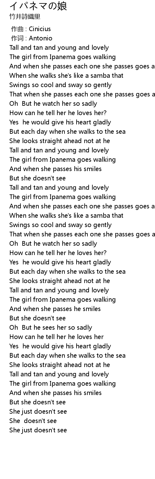 | [00:20.45] | And when she passes each one she passes goes ah |