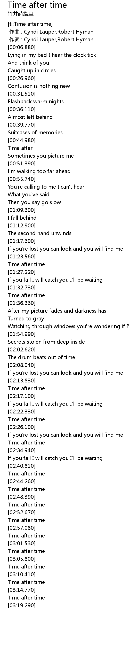 | [00:00.00] | 作曲 : Cyndi Lauper,Robert Hyman |
