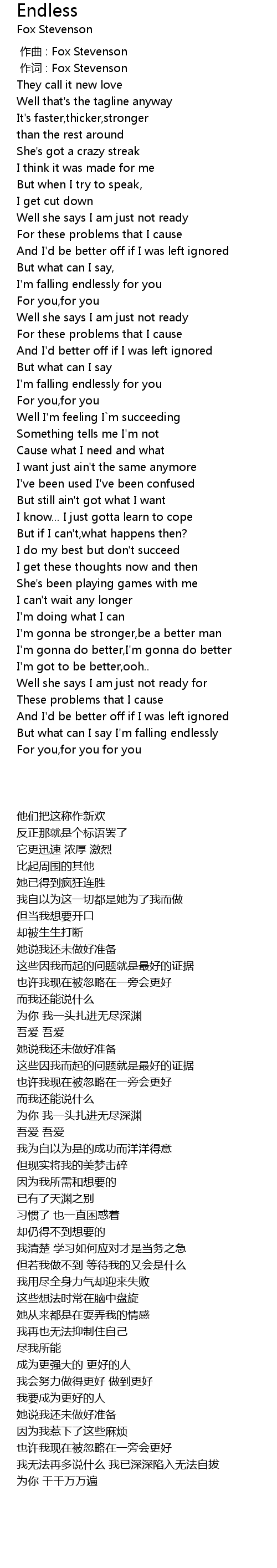 | [00:01.00] | 作词 : Fox Stevenson |