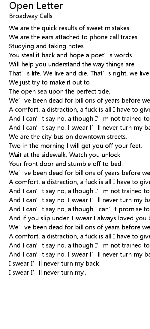 | 歌曲 | Open Letter |