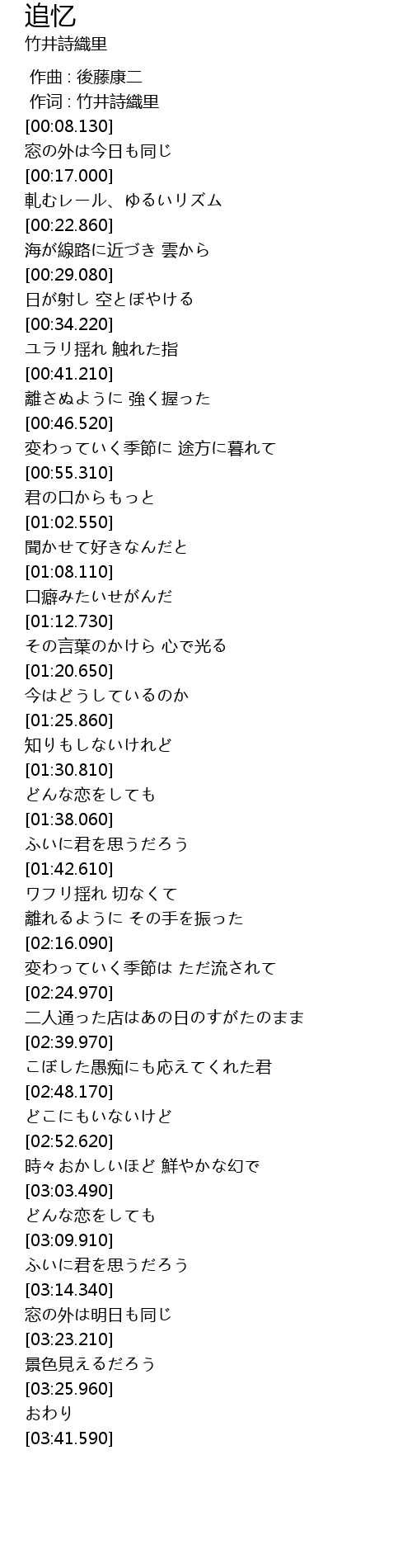 | [02:30.590] | 二人通った店はあの日のすがたのまま |