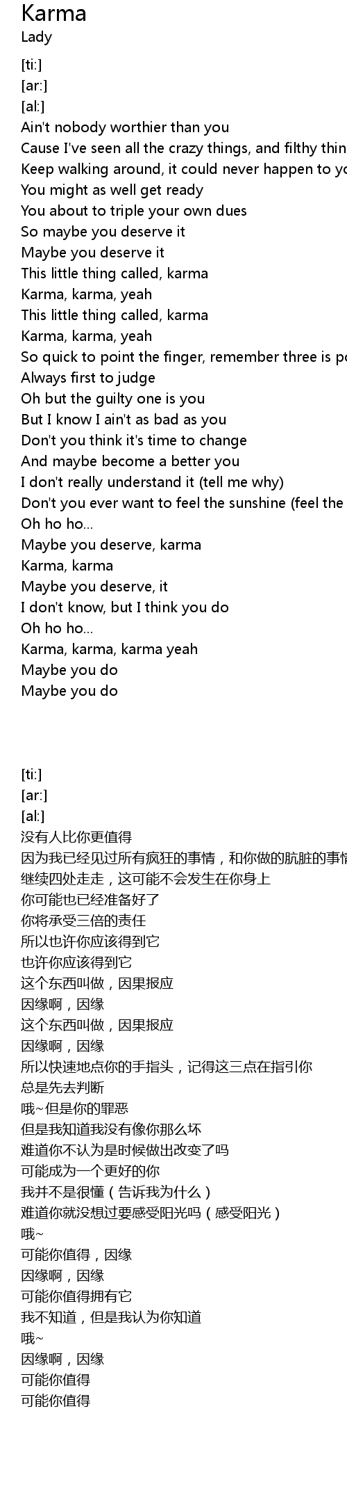 Maybe you deserve, karma |