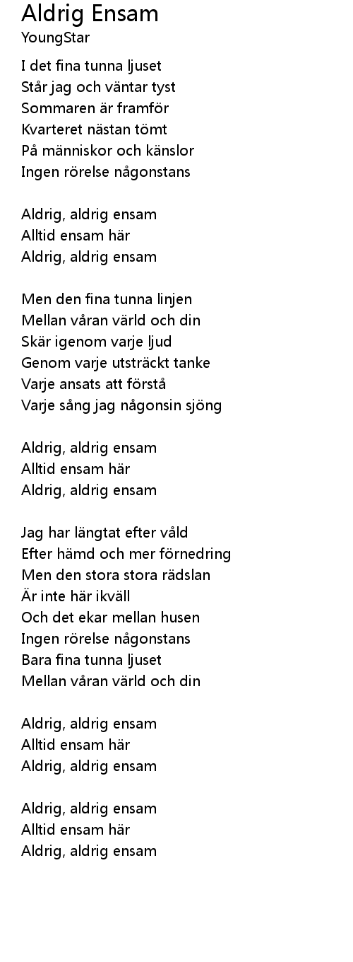 | Aldrig, aldrig ensam | |