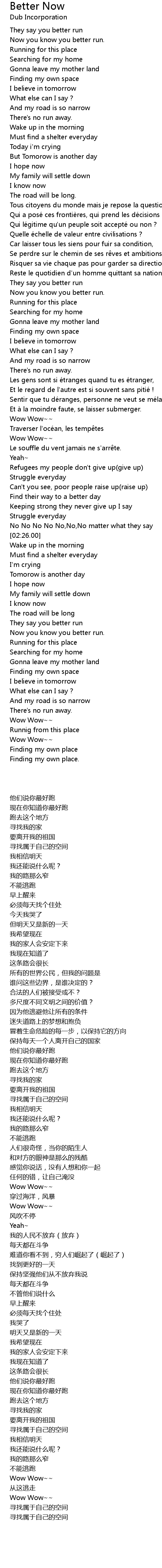 | [02:05.00] | Refugees my people don't give up(give up) |