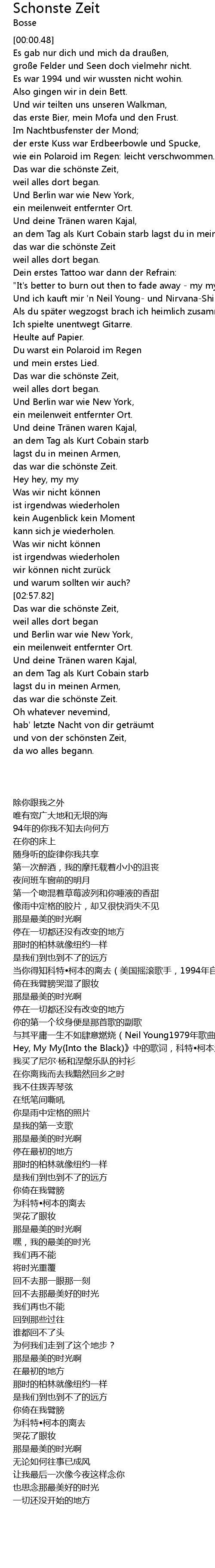 | [00:56.15] | Das war die sch nste Zeit, |