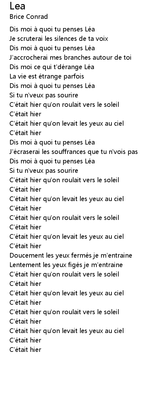 | [00:10.13] | Dis moi à quoi tu penses Léa |