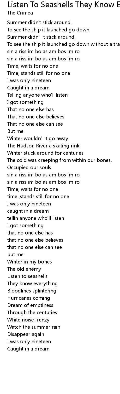 | 歌曲 | Listen To Seashells They Know Everything |
