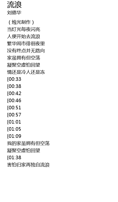 | [01:42][00:33] | 害怕归家再看着墙上 |