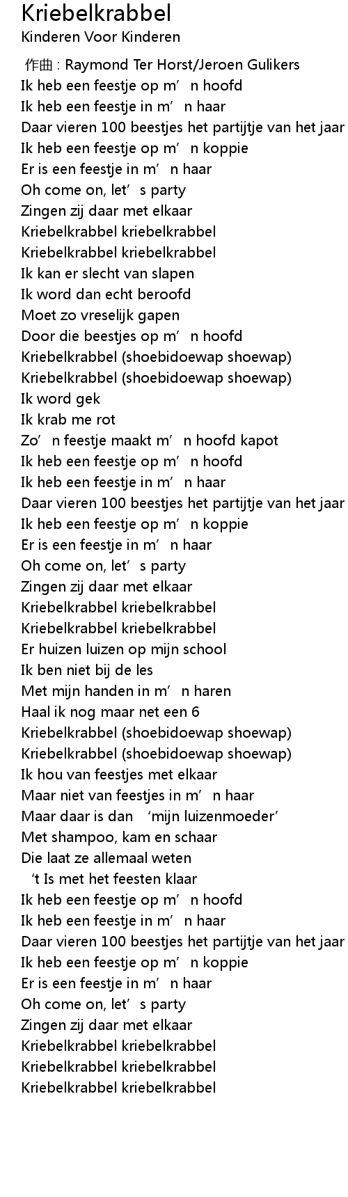 | 歌曲 | Kriebelkrabbel |