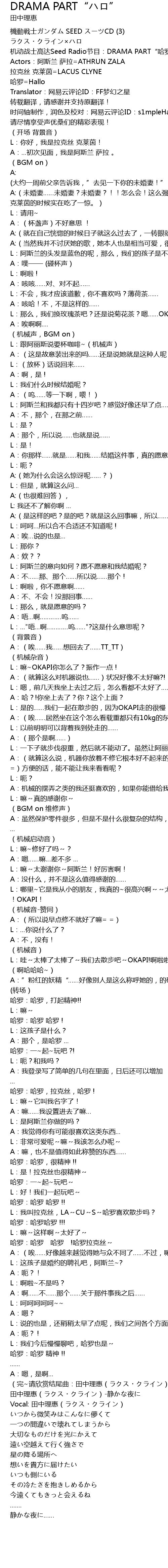 | [00:00.000] | 机动战士高达Seed Radio节目:DRAMA PART“哈罗“ |