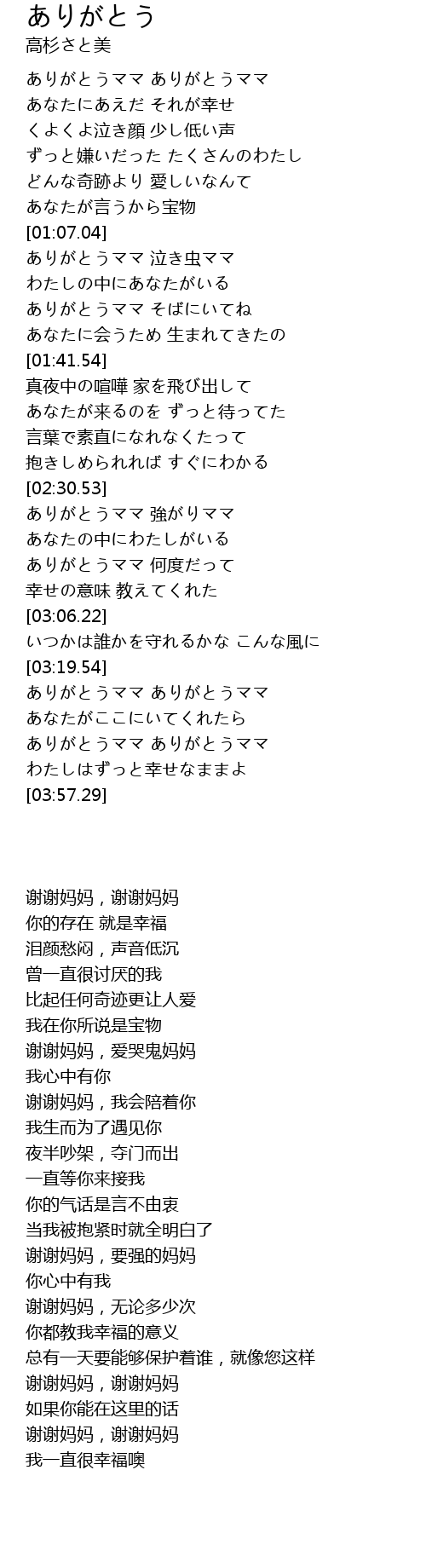 | [03:40.37] | ありがとうママ ありがとうママ |