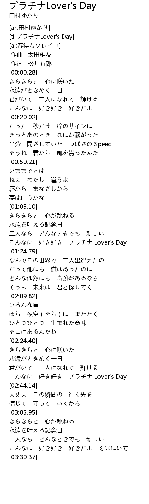 | [01:19.99] | こんなに 好き好き プラチナ Lover's Day |