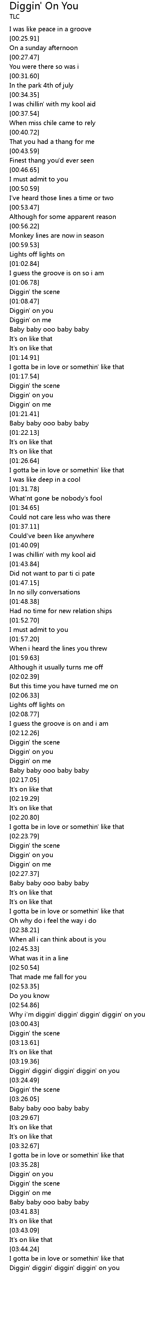 | [02:56.43] | Why i'm diggin' diggin' diggin' diggin' on you |