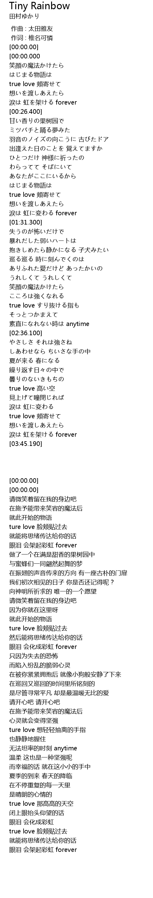 | [03:30.680] | true love 頬寄せて |