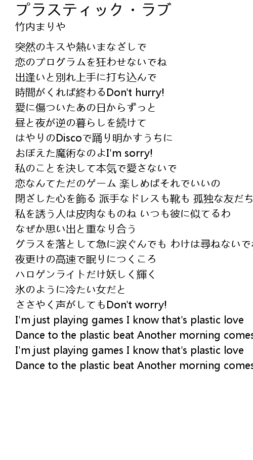 | I' m just playing games I know that' s plastic love | |