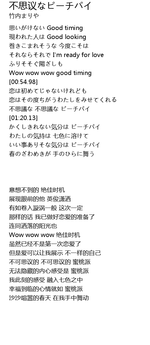 | [01:14.15] | 不思議な 不思議な ピーチパイ |