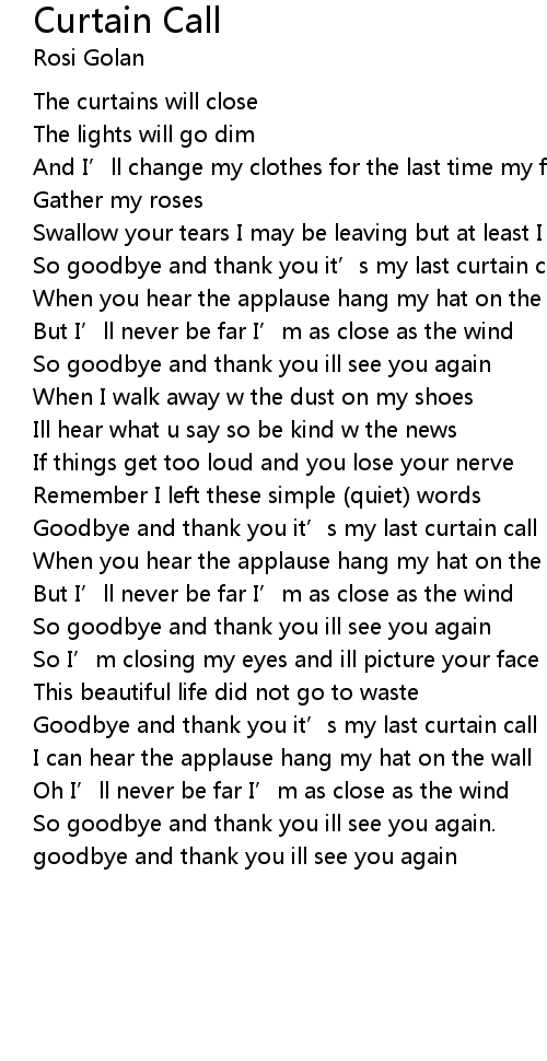 | So goodbye and thank you it' s my last curtain call | |