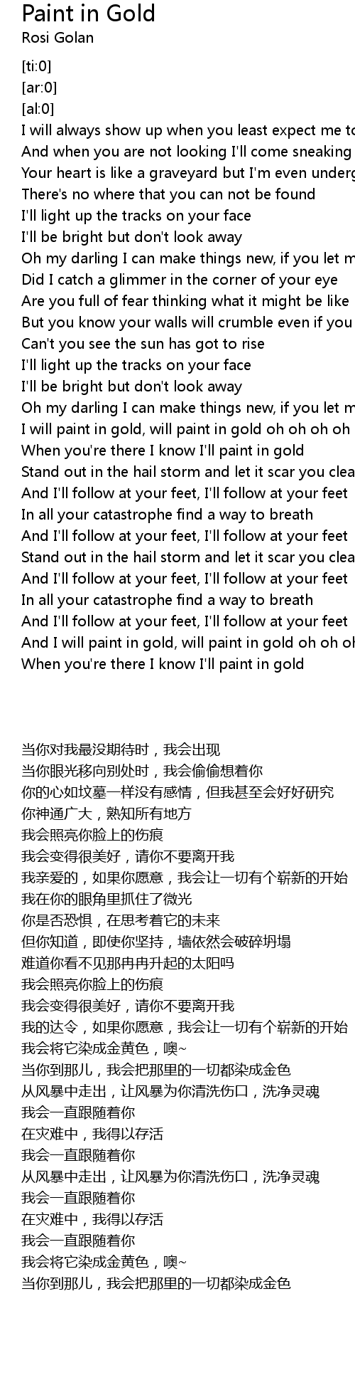 And I will paint in gold, will paint in gold oh oh oh oh |