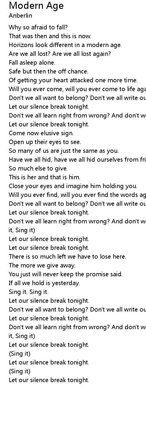 | Let our silence break tonight. | |