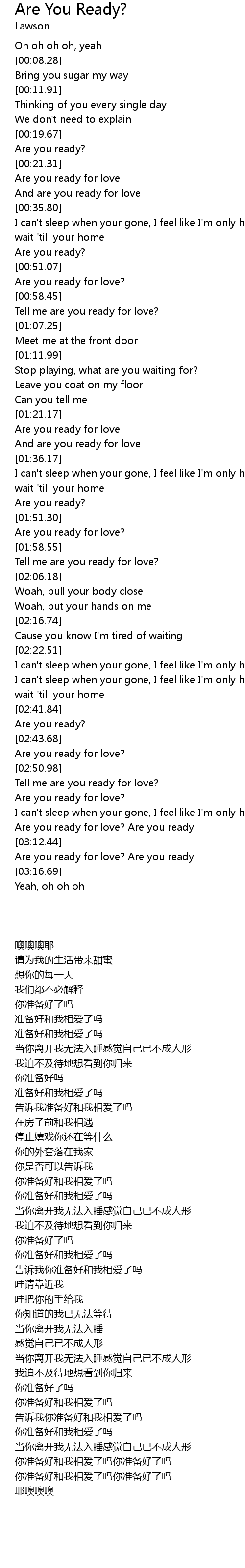 Tell me are you ready for love? |