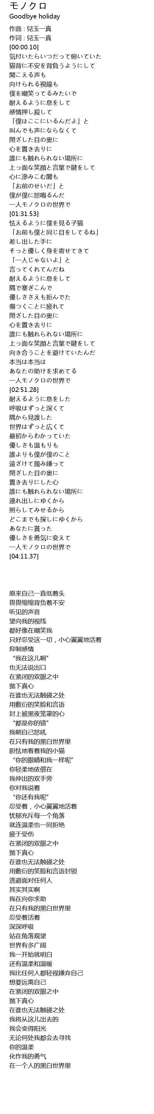 | [04:06.00] | 一人モノクロの世界で |