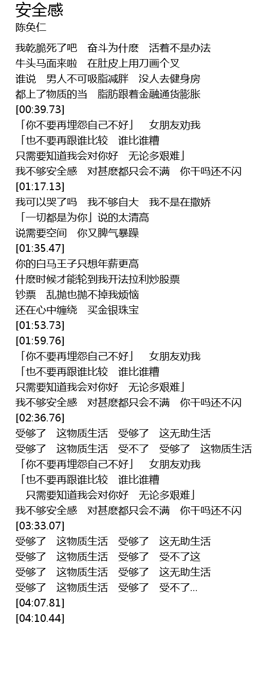 | [03:59.80] | 受够了 这物质生活 受够了 受不了... |