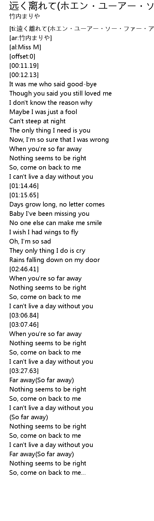 | [ti:遠く離れて(ホエン・ユーアー・ソー・ファー・アウェイ)] | |