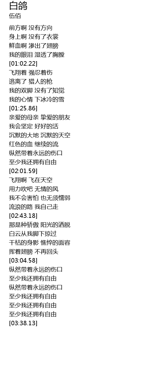 | [03:22.26] | 至少我还拥有自由 |