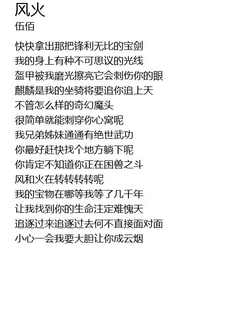 | [01:32.520] | 风和火在转转转转呢 |