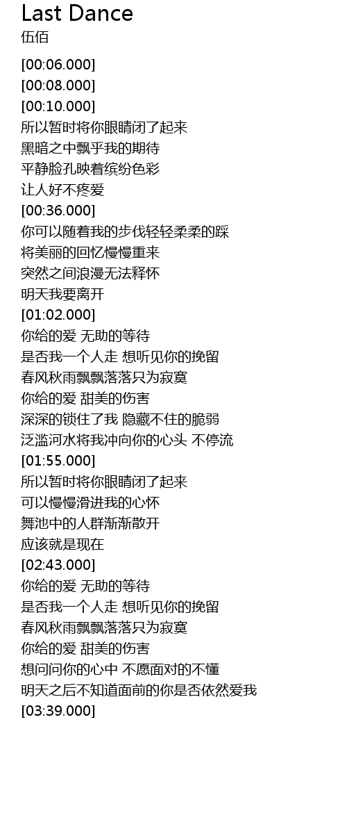 | [02:57.000] | shi fou wo yi ge ren zou xiang ting jian ni de wan liu |