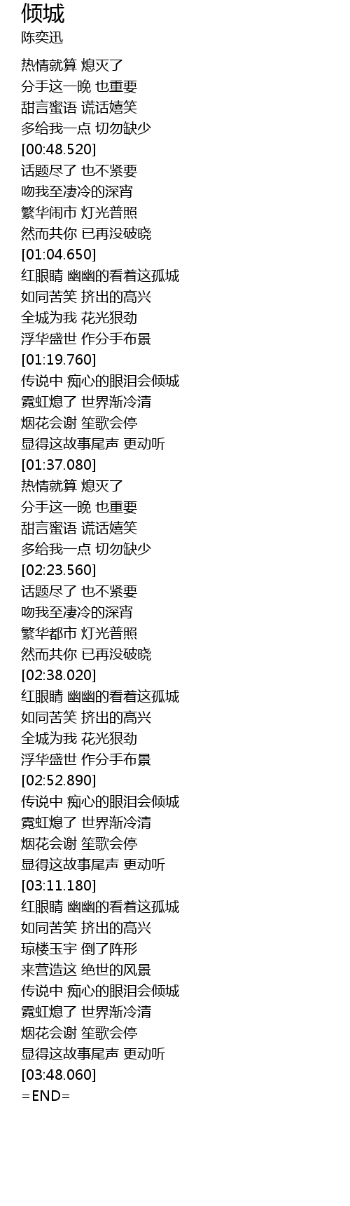 | [03:30.850] | 传说中 痴心的眼泪会倾城 |