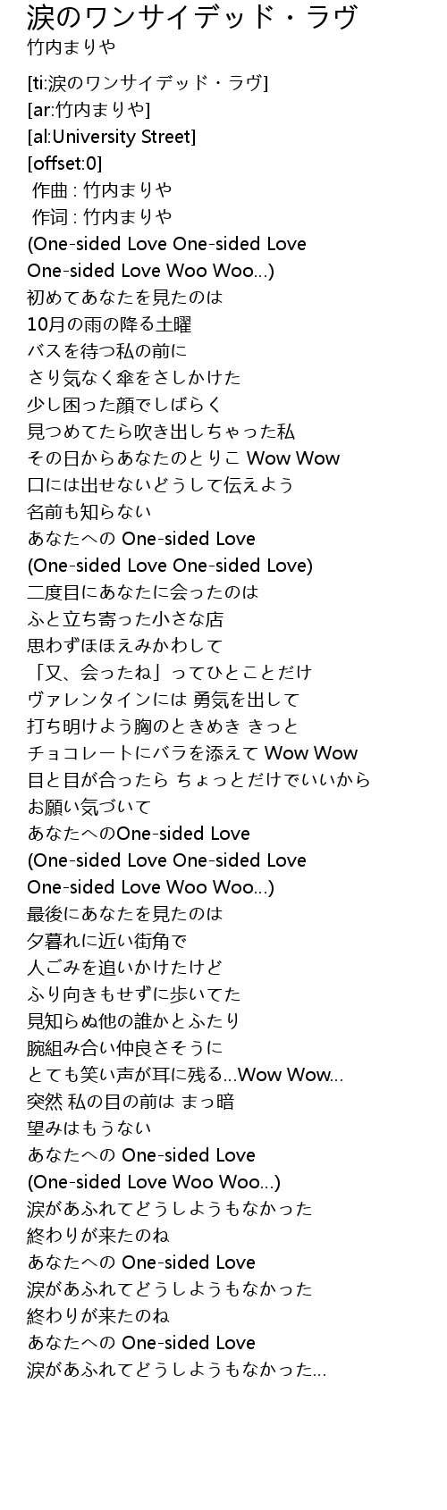 | [ti:涙のワンサイデッド・ラヴ] | |