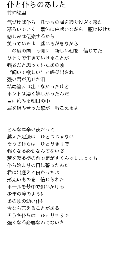 | 肩を组み合った歌が 听こえるよ | |