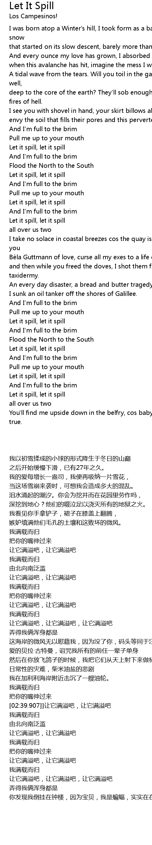 | [02:39.907] | Let it spill, let it spill |